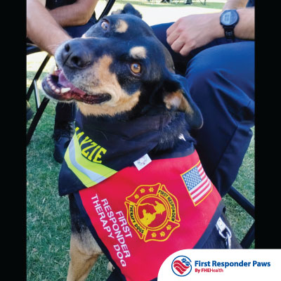 - A $2,500 donation made in their honor by FHE Health to our partner organization First Responders Pack Foundation, which exists to train more therapy dogs for first responders