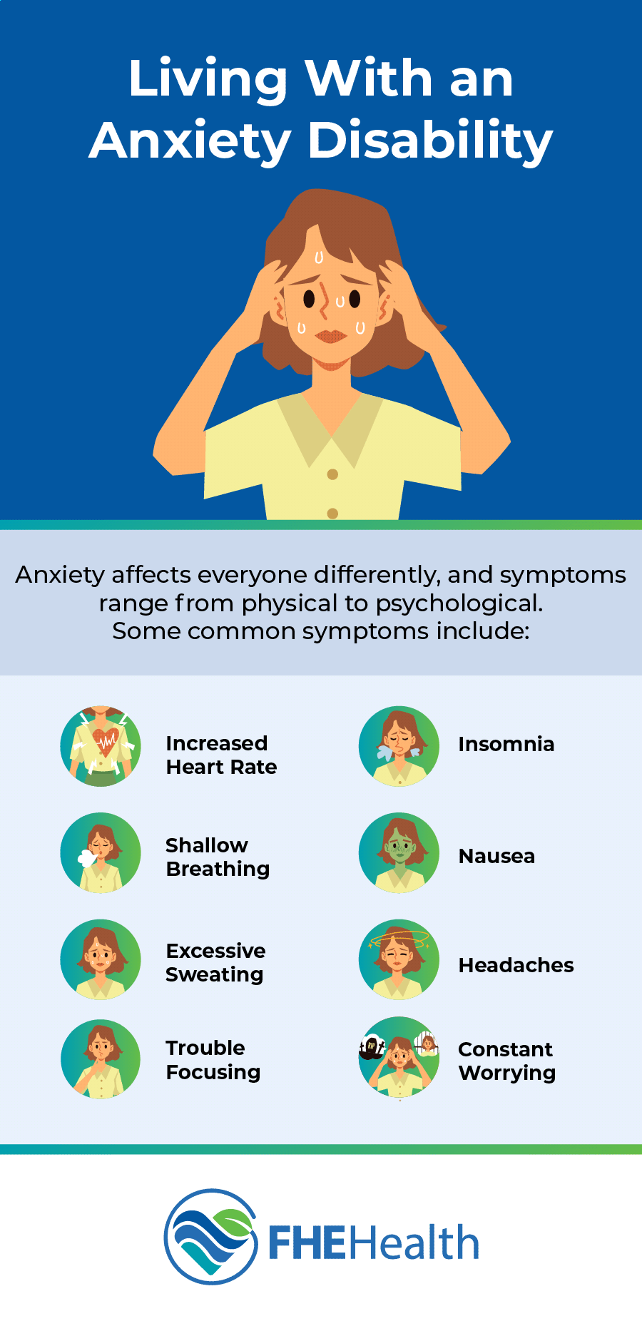 With an anxiety disability, you may be unable to focus on responsibilities for work or school, even with a tight deadline. You might also struggle to maintain intimate relationships or make decisions. Living in constant fear of an anxiety trigger can lead to high stress levels, which have repercussions of their own.