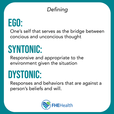 While ego-syntonic behaviors are actions that align with your personal goals, values, and beliefs, as you might expect, ego-dystonic behaviors are actions that are inconsistent with your ego. These behaviors tend to gradually develop over time, and it can take days, weeks or even years to shift your actions from being congruent with your ego to being largely in conflict with how you see yourself.