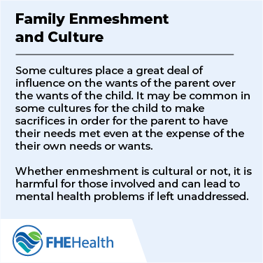 It is common for some cultures to experience enmeshment more than others. This can happen frequently with immigrant families, for example, where first-generation citizens may experience intense pressure from immigrant parents.