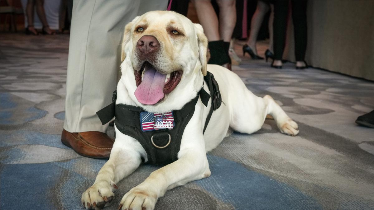 The speakers shared their unique experiences with therapy dogs and collectively recognized that therapy dogs can help first responders heal from trauma.Former Navy Seal and best-selling author Jason Redman keynoted the luncheon. He emphasized tenacity and the power of a positive outlook. Redman also spoke about how his therapy dog Kharma, (named after the Iraqi city where Redman was catastrophically injured in combat), helped him recover emotionally and psychologically in the aftermath of trauma.