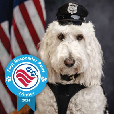 Last year, a Goldendoodle rescue named “Officer Kora” won the 2024 First Responder Paws Therapy Dog Award. Kora serves the Asheville Police Department, and below you can catch her touching story, including how she and her handler, Senior Police Officer Debbie LeCroy, were part of the relief and recovery efforts after Hurricane Helene.